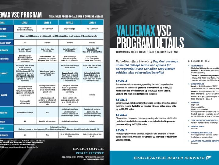 Four levels of protection (Levels 1–4) with unlimited mileage options and add-ons. From seals and gaskets to high-tech components, designed to fit diverse vehicle ages and miles while supporting lender confidence.